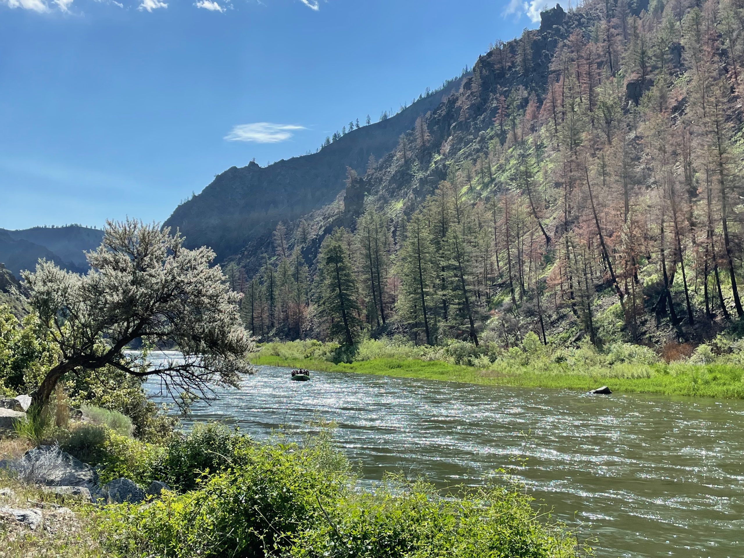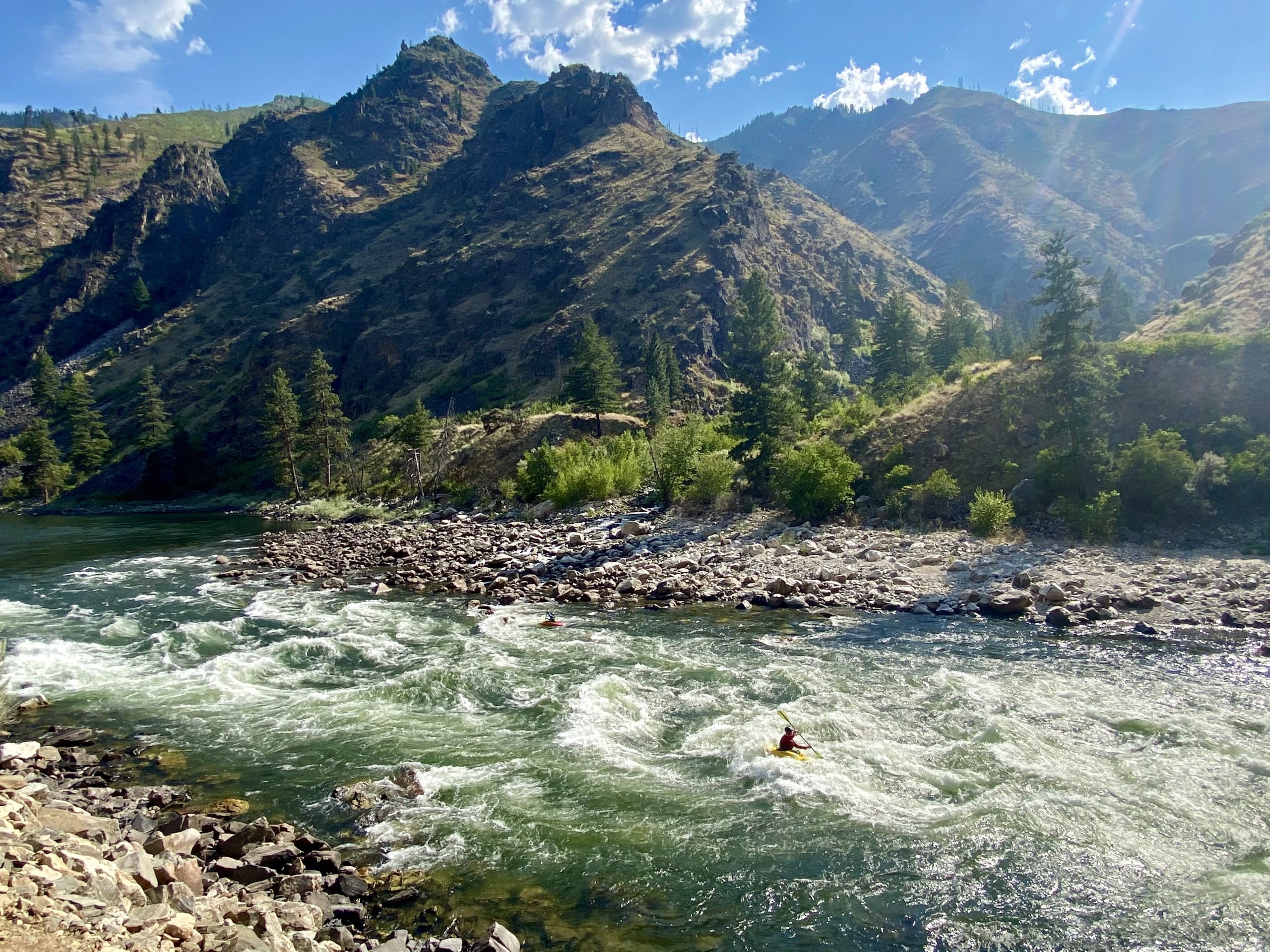 The Salmon River flows through the vast Frank Church Wilderness and is the second deepest gorge on the American continent. It is renowned for its whitewater, history, scenic beauty, and white sandy beaches. It is one of the longest free-flowing rivers in the continental United States, thus it received the Wild and Scenic designation.