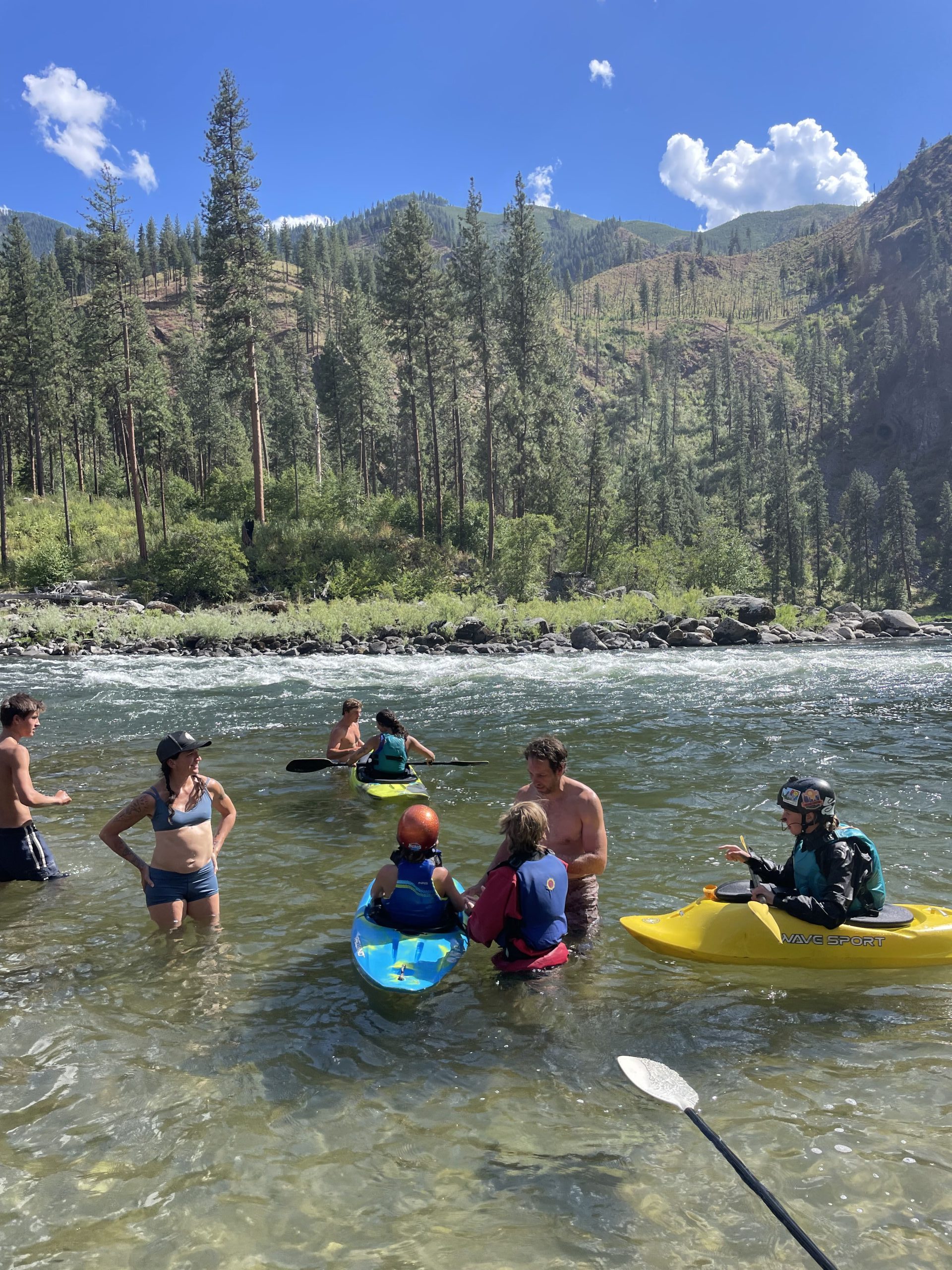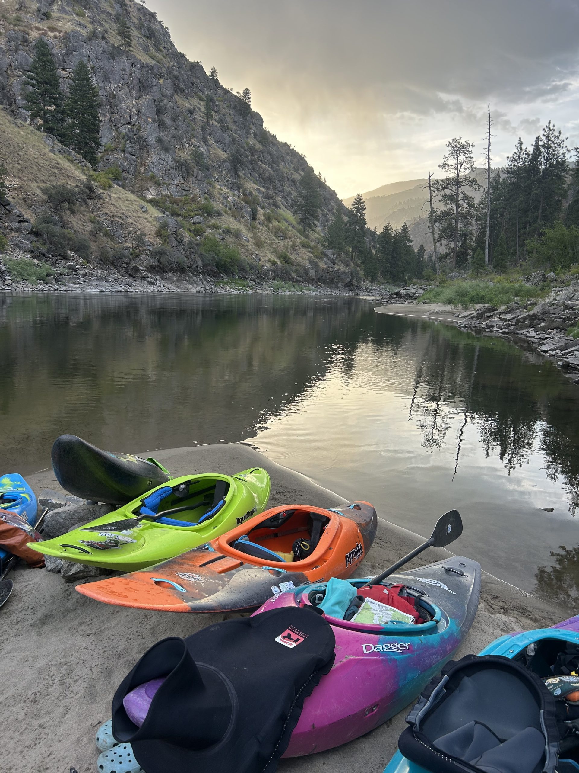 The adventure begins as we launch onto the Wild and Scenic Main Salmon River. Each day is intentionally structured to balance skill-building, adventure, and fun. Students learn how to read the river, scout rapids, identify lines, and make confident decisions on the water. They’ll practice surfing river waves, mastering eddy turns, refining paddle strokes, and developing technical whitewater skills — all while journeying down one of the most iconic rivers in the country. Evenings bring time to relax and connect at camp with hikes, hot springs, watercolor art, bracelet making, wave surfing sessions, and campfires under the stars.